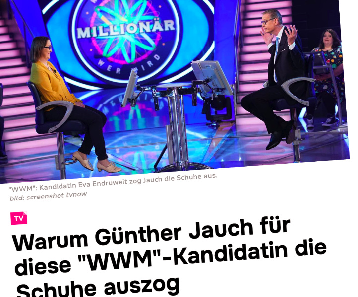 Und ja – Günther Jauch hat während der Sendung wirklich seine Schuhe ausgezogen. Warum? Erzähl ich dir irgendwann persönlich.